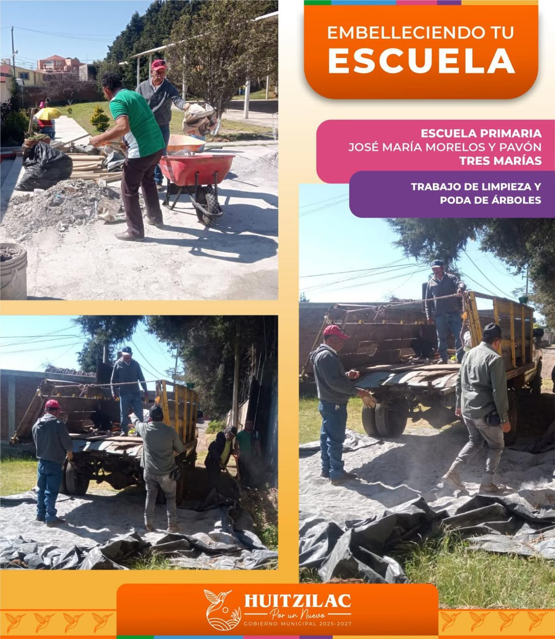 Por eso, con el programa #Embelleciendotuescuela 🎨🏫, se intervino la escuela José María Morelos y Pavón realizando poda 🌳, limpieza general 🧹 y embellecimiento 🌸.