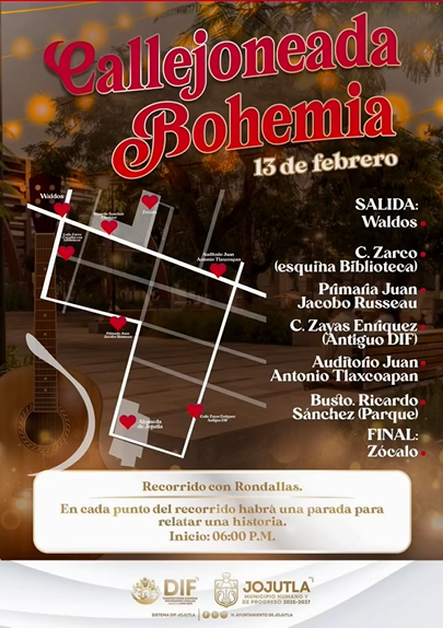 Llenemos de amor y alegría este 13 de febrero las calles, acompáñanos con tu familia a celebrar estos días del amor y la amistad, a la luz de las velas nuestros invitados especiales (Rondallas de diferentes partes del estado y de nuestro municipio) deleitarán tu oído con las mejores notas musicales.