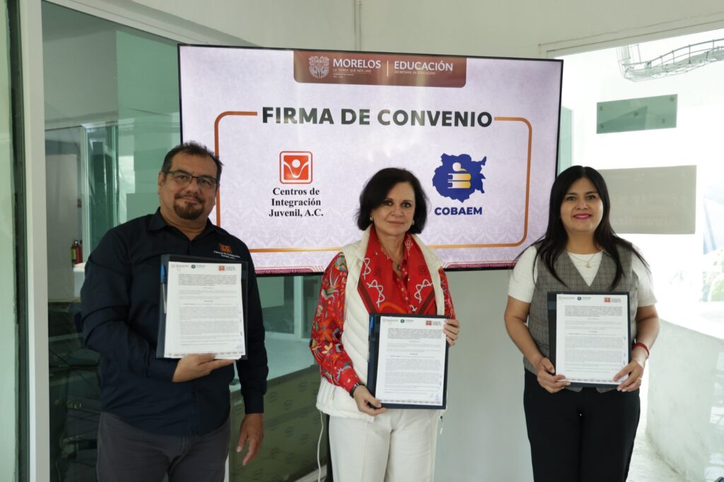CUERNAVACA, MORELOS. El Colegio de Bachilleres del Estado de Morelos (Cobaem) y los Centros de Integración Juvenil (CIJ) firmaron un convenio para garantizar la salud mental y física de más de 10 mil estudiantes en 23 planteles. Esta alianza estratégica brindará atención psicológica oportuna, talleres y orientación para prevenir adicciones y violencia en la juventud.