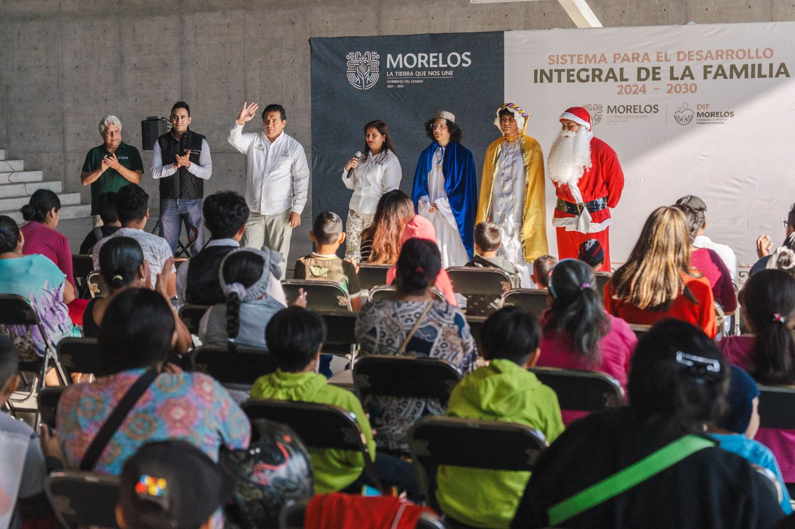 En el municipio de Temixco las y los infantes disfrutaron de un festival con actividades lúdicas, cuenta cuentos, convivencia con los tres Reyes Magos y Santa Claus, se deleitaron con la partida de rosca y recibieron regalos que llevarán en su corazón.