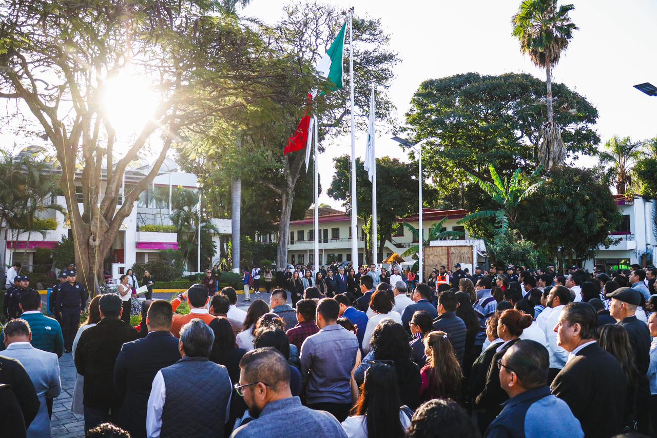 ​En una ceremonia marcada por el respeto a los símbolos patrios, el alcalde de Cuernavaca, José Luis Urióstegui Salgado, encabezó este martes el izamiento de la bandera nacional en la sede Papagayo del Ayuntamiento. El evento, realizado en el marco del Día de la Bandera (24 de febrero), tuvo como objetivo fortalecer la identidad nacional y la cohesión social entre los servidores públicos y la ciudadanía.