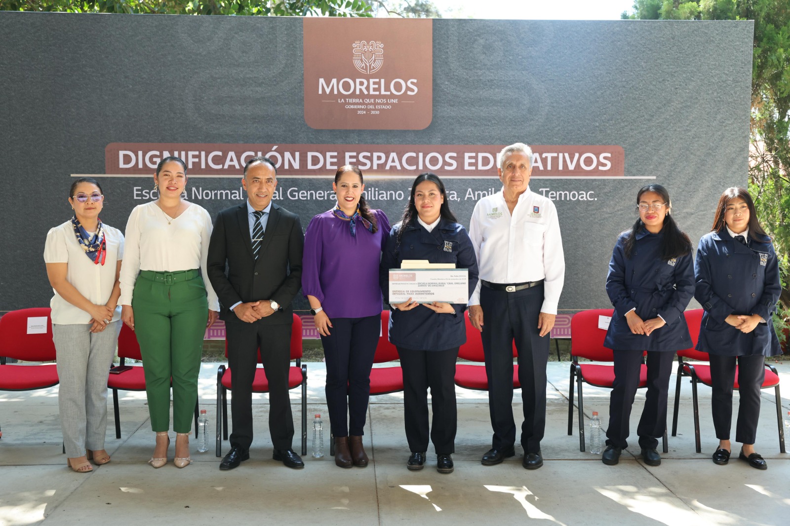 En seguimiento al compromiso de la gobernadora Margarita González Saravia, por dignificar los espacios de vida y estudio de la comunidad estudiantil de la entidad, la secretaria de Educación, Karla Aline Herrera Alonso, y el encargado de despacho de la dirección general del Instituto de la Educación Básica del Estado de Morelos (IEBEM), Raúl Aguirre Espitia, realizaron la entrega de equipamiento para dormitorios en la Escuela Normal Rural “General Emiliano Zapata” de Amilcingo, en el municipio de Temoac.