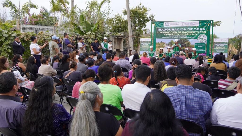 El Ayuntamiento de Emiliano Zapata, encabezado por el presidente municipal Santos Tavarez García, llevó a cabo la inauguración de la obra de construcción de pavimento con concreto hidráulico en la calle Jacarandas, ubicada en la colonia El Guante, como parte de las acciones para fortalecer la infraestructura urbana del municipio.