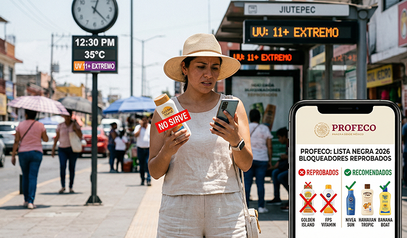 La radiación UV extrema en México obliga al uso diario de protector solar, pero no todos los productos cumplen lo que prometen. El reciente estudio de calidad de la Profeco detectó marcas que mienten sobre su nivel de protección real, exponiendo a los consumidores a quemaduras y daños severos en la piel. Conoce la lista de productos reprobados y los recomendados por especialistas.