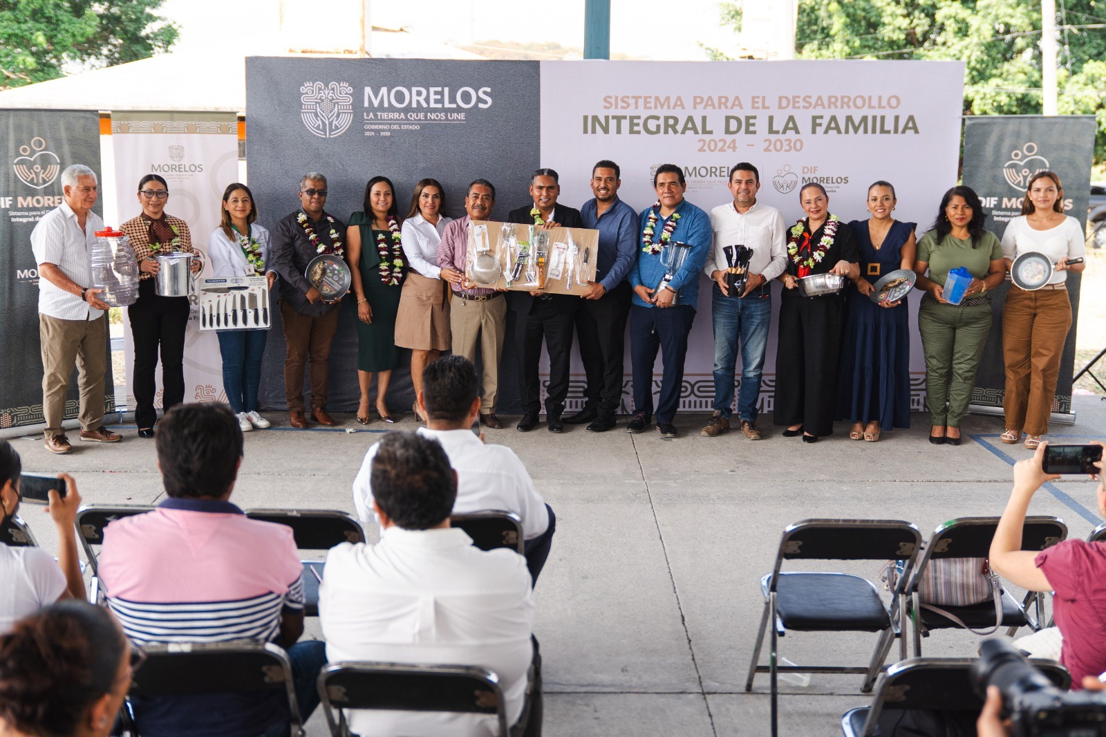 En compañía del director de Alimentación y Desarrollo Comunitario del SEDIF, Gabriel Zúñiga Maldonado, Santos Tavarez García, presidente municipal de Emiliano Zapata; Yareli Cárdenas Maldonado, presidenta del Sistema Municipal DIF Emiliano Zapata; representantes de Servicios de Salud, el Instituto de Educación Básica del Estado de Morelos (IEBEM), presidentas y presidentes de SMDIF, se realizó la entrega formal de los equipos de cocina y utensilios a planteles educativos de Emiliano Zapata, Mazatepec, Miacatlán, Tepalcingo, Cuernavaca, Tlaltizapan, Amacuzac, Jojutla, Tlaquiltenango, Temixco, Jantetelco, Tetecala, Temoac, Tepoztlán y Puente de Ixtla.