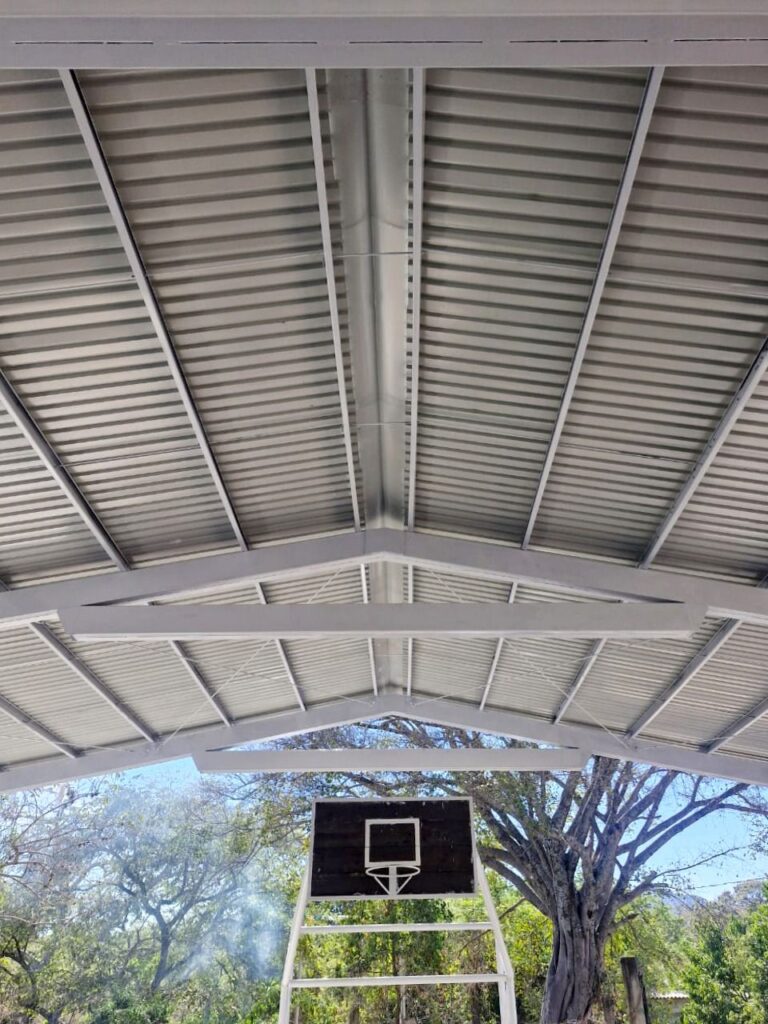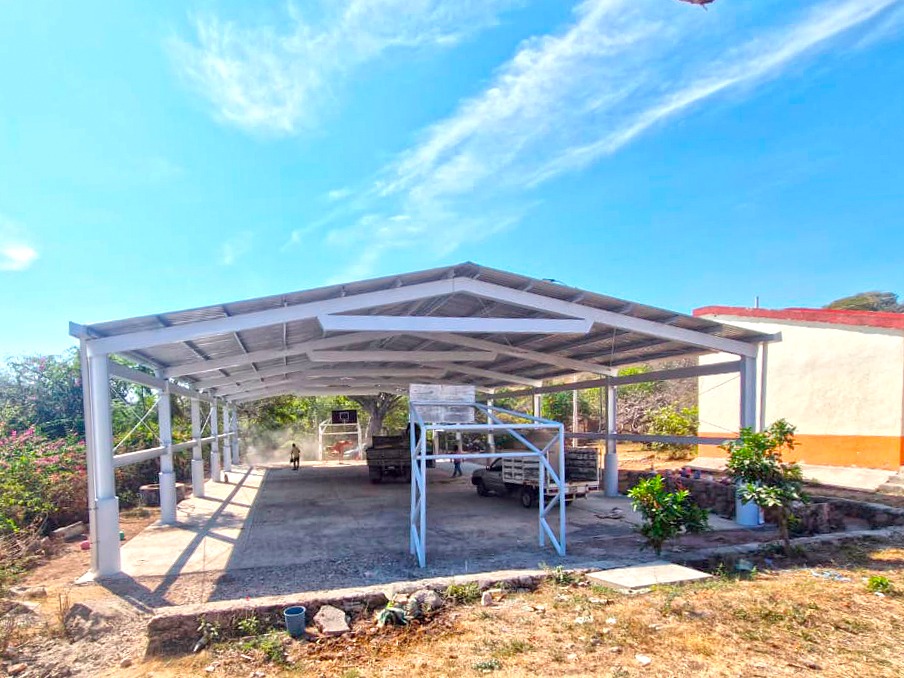 Detalló que los trabajos contemplaron cimentación y anclaje de la estructura principal de soporte, con columnas, pilares, armadura y vigas de amarre, así como colocación de lámina a dos caídas, sistema de fijación y canales de drenaje pluvial, con lo que ha quedado cubierta un área de 401 metros cuadrados de la explanada de usos múltiples del plantel.