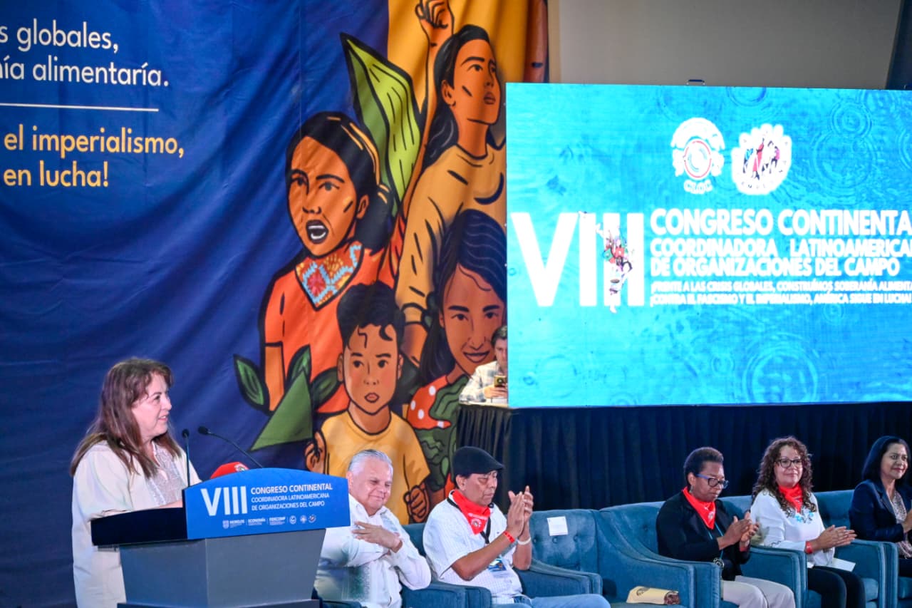 La gobernadora del estado de Morelos, Margarita González Saravia, participó en el VIII Congreso Continental de la Coordinadora Latinoamericana de Organizaciones del Campo (CLOC–Vía Campesina), donde reiteró que su gobierno mantiene como prioridad el fortalecimiento del campo mediante inversiones históricas, el impulso a la producción agroecológica y respaldo directo a productoras y productores.