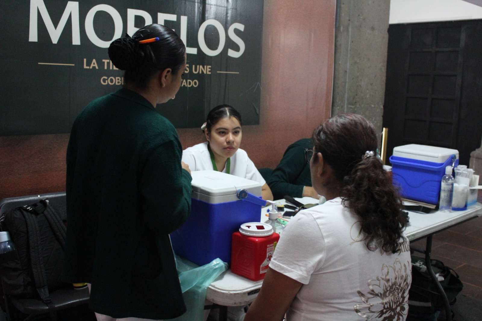 Cerca de 180 servidores públicos del Gobierno de Morelos recibieron atención médica gratuita durante la Campaña de Vacunación y Detección de Enfermedades en Palacio de Gobierno. En coordinación con el IMSS, se aplicaron dosis contra influenza y hepatitis, además de realizar pruebas de glucosa para fortalecer la prevención y el bienestar laboral en la entidad.