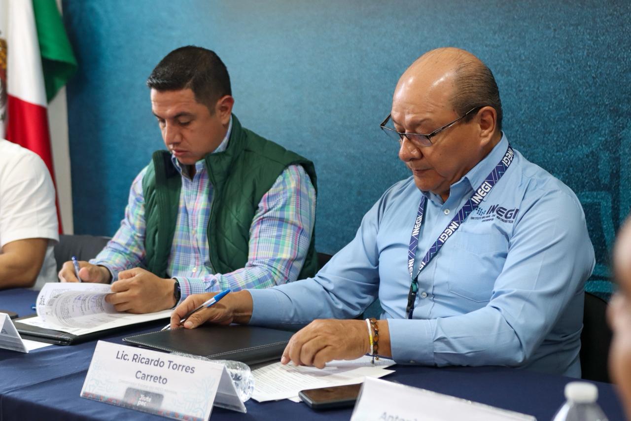 El alcalde Eder Rodríguez Casillas encabezó la firma de convenio con el INEGI para cerrar un Centro de Información Estadística y Geográfica Municipal denominado Centro.